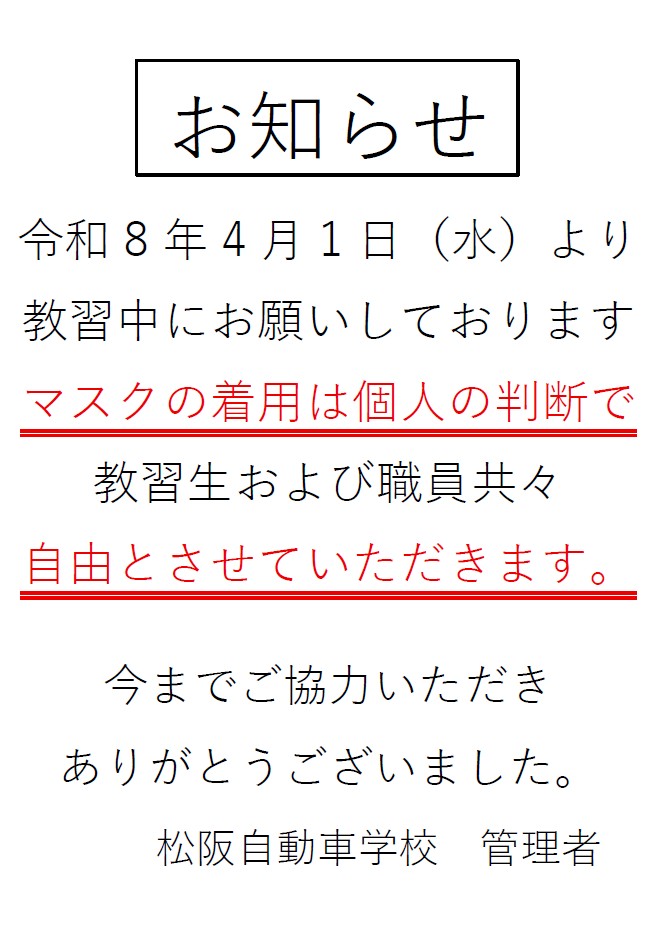 教習時のマスク着用に関して